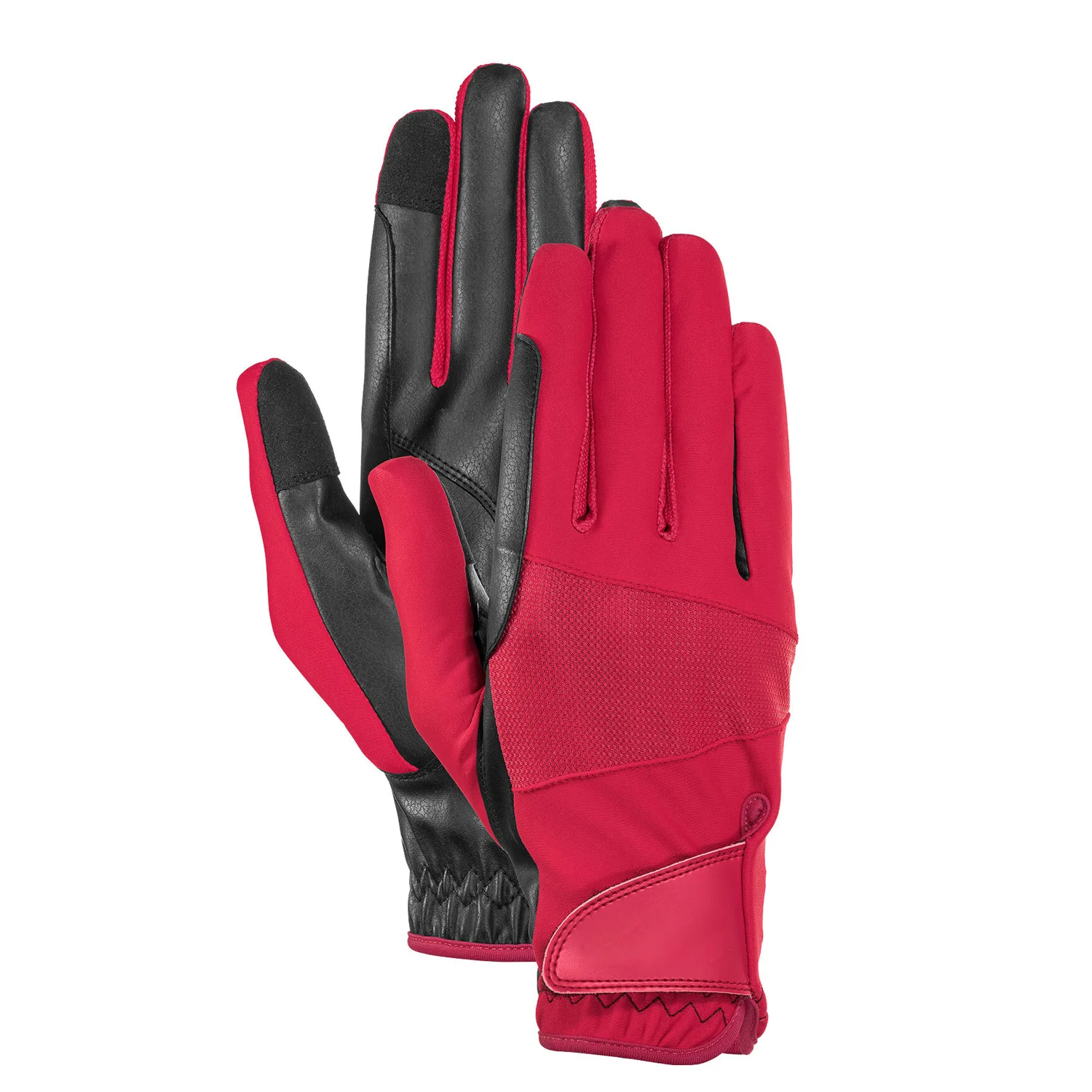Touchscreen compatible Synthetic suede palm with textured grip overlay 4-way stretch breathable top Adjustable hook and loop wrist closure Neoprene